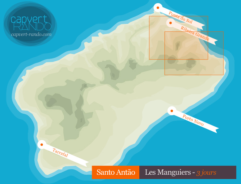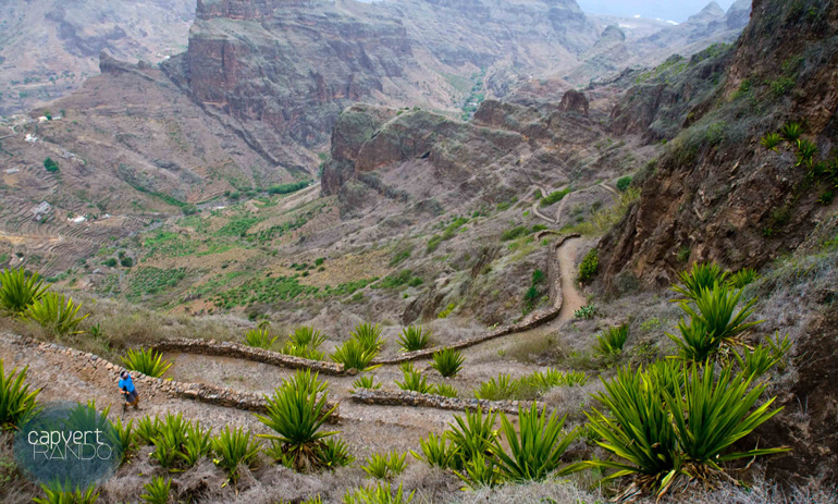 Unser Fahrer wird uns am kleinen Hafen von Porto Novo empfangen. Wir nehmen dann den alten Weg, um auf dem höchsten Punkt einen wunderschönen Panoramablick zu genießen, dem Ausgangspunkt unserer Wanderung, bei der wir ein unglaublich grünes und fruchtbares Tal erkunden. Der Fahrer wartet auf uns am Ende der Tour. Wir fahren dann in Ruhe zu unserem kleinen Hotel, vorbei an steilen Berghängen. Der erste Wandertag hat uns einen Vorgeschmack auf das Land gegeben, ein köstliches Abendessen führt uns in die kapverdische Küche ein.